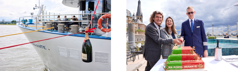 Onder een stralende hemel en met vele warme wensen van de genodigden, heeft de Zwitserse rederij Scylla op 16 mei haar nieuwste schip, de Porto Mirante, feestelijk gedoopt. Dit 40ste riviercruiseschip van de Zwitserse familierederij is speciaal ontworpen voor de unieke kenmerken van de Douro en zijn sluizen. Voor directeuren Arno en Robert Reitsma was het een grote eer om consul-generaal van Portugal, Lídia Nabais, als doopmoeder te verwelkomen. Voor Nabais, zelf Portugese, was het “een van de mooiste taken” die ze in haar ambtstermijn heeft mogen uitvoeren. Ze deelde graag haar tips over de prachtige Douro en de regio met de aanwezige gasten.