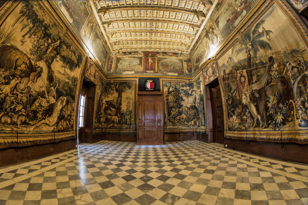 De wandtapijten werden in 1708 besteld bij de beroemde Gobelins-manufactuur in Parijs door grootmeester Ramon Perellos y Roccaful als onderdeel van zijn ‘gioia’ – een geschenk aan de Orde bij zijn verkiezing. Ze tonen exotische flora en fauna en bevinden zich sinds 1710 in het Grootmeesterspaleis, na een moeilijke reis waarbij ze bijna verloren gingen aan zeerovers. Het Grootmeesterspaleis is een van Malta’s mooiste gebouwen en huisvest vandaag onder andere het kantoor van de President van Malta.