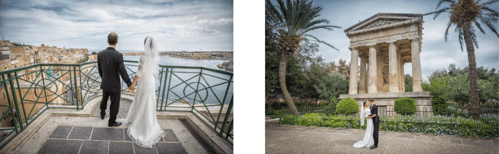 Op zoek naar een betoverende locatie met een prachtig uitzicht? De Upper en Lower Barrakka Gardens in het hart van Valletta zijn exact wat je zoekt. Oorspronkelijk aangelegd in de 17e eeuw als privétuinen voor de ridders van de Orde van Malta, bieden deze tuinen een adembenemend uitzicht op de Grand Harbour. Met iconische standbeelden, fonteinen en prachtige bloemperken vormen ze de ideale setting voor een onvergetelijk huwelijk of schitterende huwelijksfoto’s.
