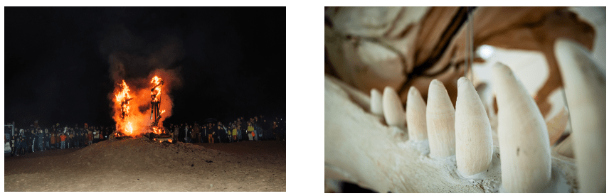 Op 31 oktober vertrekken alle griezelfiguren terug uit Koksijde-Oostduinkerke. Al doen ze dat niet in stilte … In een grote stoet paraderen ze langs de Kerkepannezaal, de Strandlaan, het Lucionplein en de Zeedijk. Ze eindigen op het strand, met een heuse heksenverbranding.