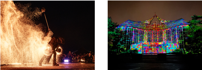 Par ailleurs, vous veillerez à prêter attention à la façade de l’église « O.L.V.-ter-Duinen ». En effet, lors des vacances de Noël, elle servira de décor au féérique spectacle son et lumière « Eau et Dunes ». Des artistes professionnels accompliront une prestation impressionnante, sur la place de l’église. Tandis que de belles projections vidéo coloreront la façade de cet édifice.