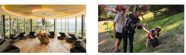 Hotel Der Waldhof ligt in één van de mooiste natuurgebieden van Zuid-Tirol. En hoe kun je de natuur beter beleven, dan naar buiten te trekken? In de hoteltuin en het privé-bos van 30.000 vierkante meter floreert de natuur met fluitende vogels, fladderende vlinders en zoemende bijen. Trek je wandel- of loopschoenen aan en ga op ontdekking. Zin om de handen uit de mouwen te steken? Gasten krijgen de mogelijkheid om hun eigen boom te planten. Nu en dan vormt de natuur ook het decor voor artistieke voorstelling.
