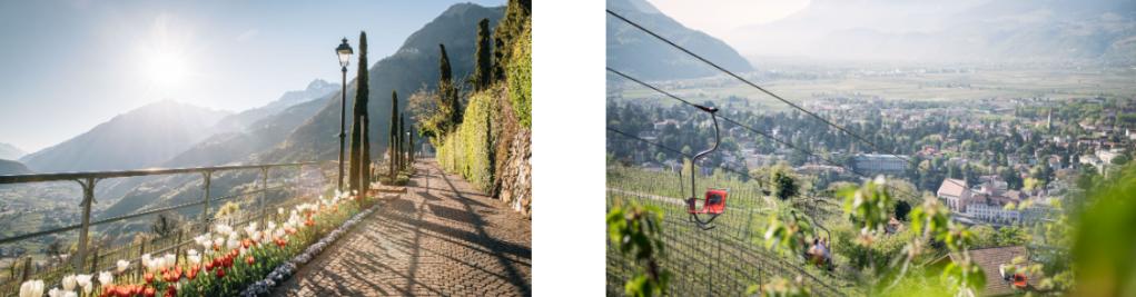 Meran heeft een uniek Alpen-Mediterrane klimaat, ideaal voor wie van mildere lentetemperaturen houdt. Het is de perfecte balans tussen ontspanning in de zon en avontuur in de bergen, met een fantastisch uitzicht op de nog besneeuwde toppen.
