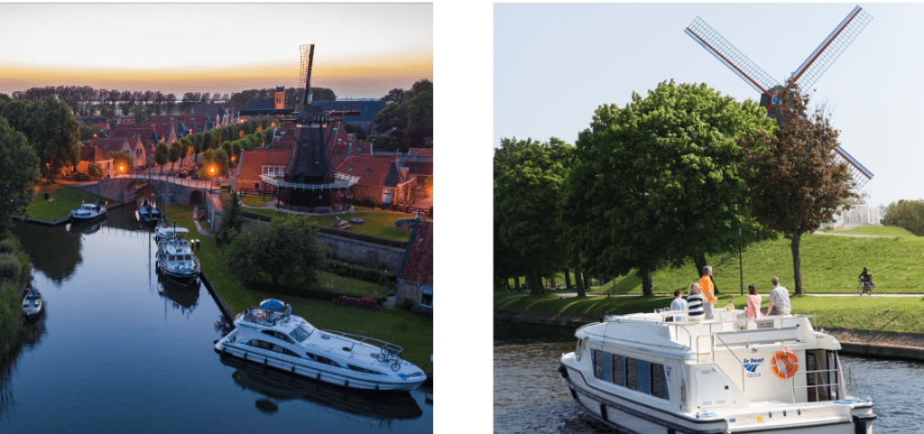 - Midden-Nederland, Amsterdam en Friesland: hier vaar je heerlijk langs windmolens, tulpenvelden, historische stadjes of bezoek je een van de grote steden zoals Amsterdam en Utrecht.