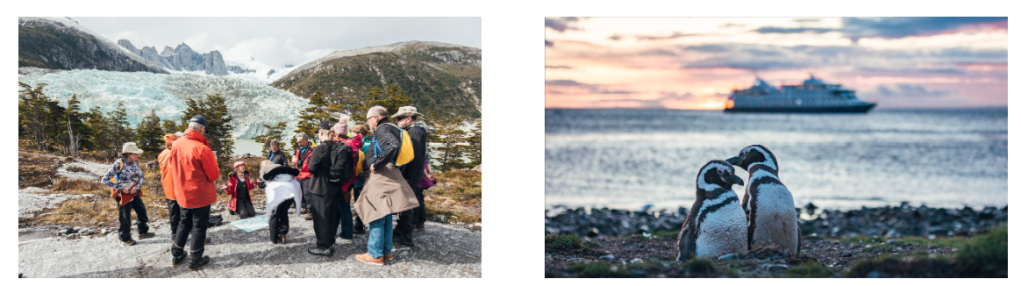 Les points forts du voyage incluent la visite des majestueux glaciers de la baie d’Ainsworth et du glacier Brookes, la possibilité d’observer des baleines à bosse au parc marin Francisco Coloane et des vues époustouflantes depuis le cap Horn, le légendaire “bout du monde”. De plus, des excursions permettent de se promener dans des forêts subantarctiques et de découvrir la flore et la faune fascinantes de cette région reculée.