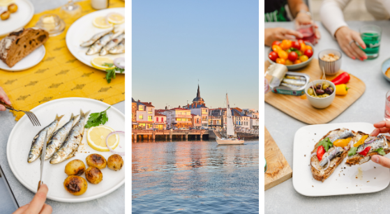 Sur le quai, Le Banc des Sardines propose la sardine comme il se doit : grillée à la perfection, croustillante à l’extérieur, fondante à l’intérieur, accompagnée d’une pincée de fleur de sel et d’un verre de vin blanc bien frais. Un peu plus loin, au centre-ville, Le Casier sert sardines, moules et ragouts de poissons dans une version simple mais raffinée. Pour découvrir l’histoire derrière la boîte, rendez-vous à la conserverie La Perle des Dieux, où les sardines sont travaillées à la main depuis 1887. Et pour aller encore plus loin dans l’univers artistique et narratif de la sardine, l’Atelier de la Sardine vous ouvre ses portes. Les emballages colorés sont devenus de véritables petits objets d’art, parfaits comme souvenir ou accessoire d’apéritif.