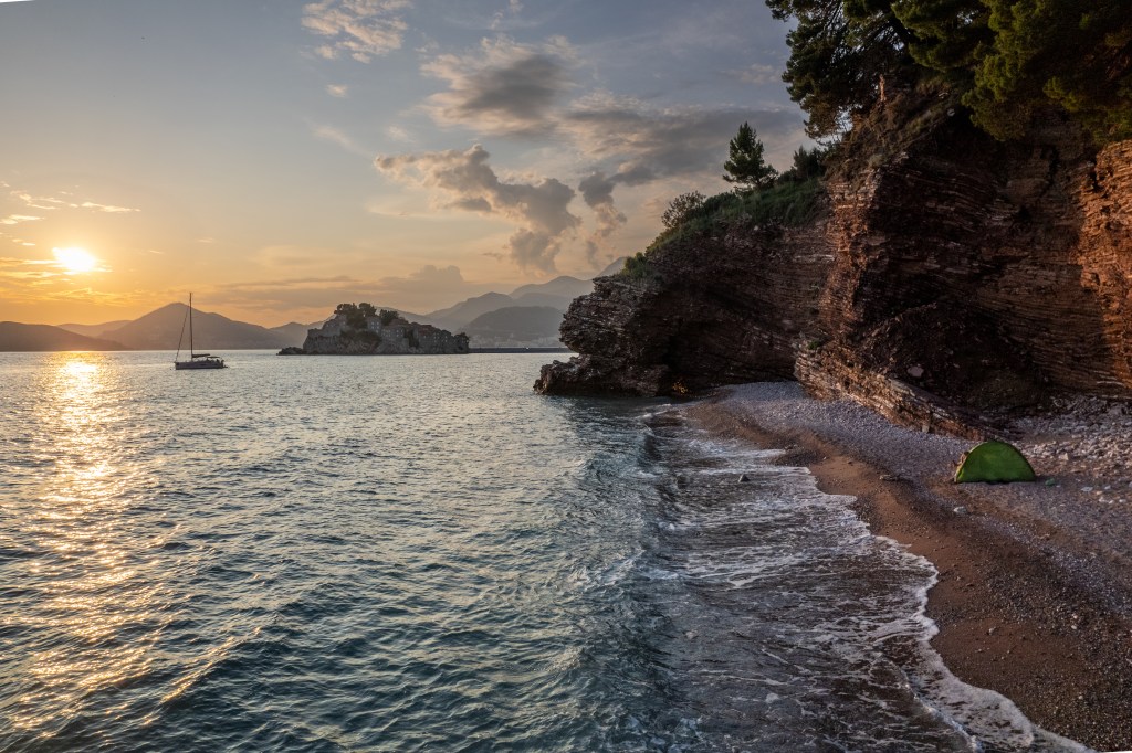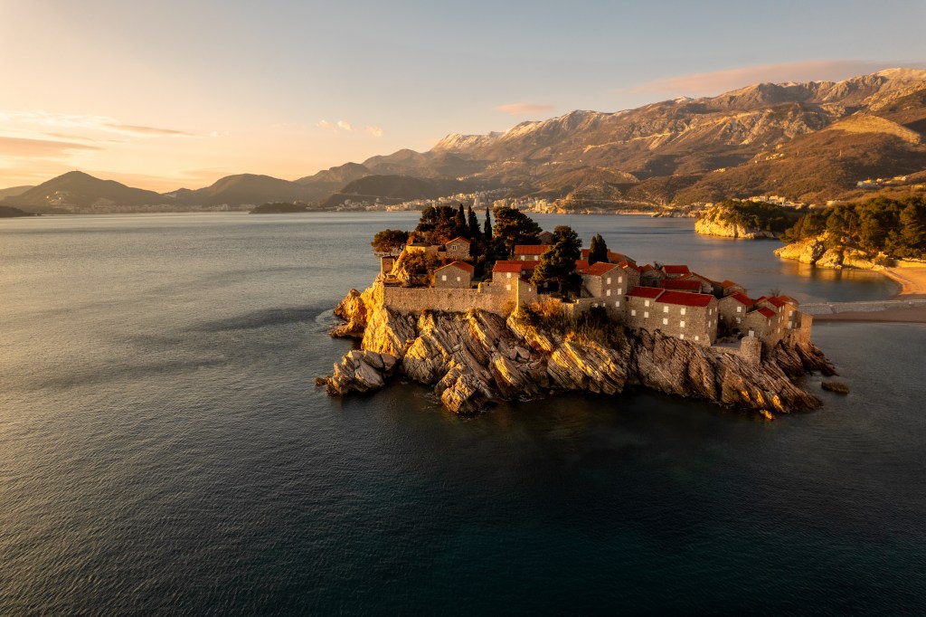 6. Sveti Stefan : Une petite île iconique, reliée au continent par un étroit tombolo.