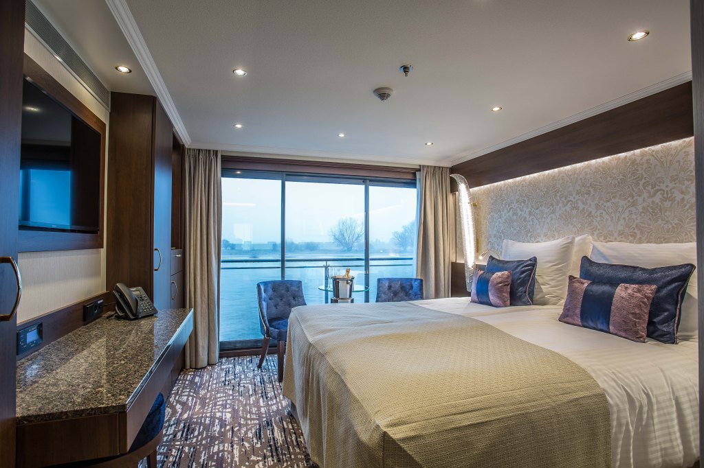 Tijdens dat bezoek kom je terecht op een 135 meter lange riviercruiser. Daar proef je van het relaxerende leven aan boord. Je vlijt je neer in de panoramische loungebar, verkent de twee culinaire restaurants, inspecteert de wellness- en fitnessruimtes, flaneert langs het zwembad op het zonnedek … En je werpt natuurlijk een blik in de comfortabele kajuiten – elk met zicht op het water.