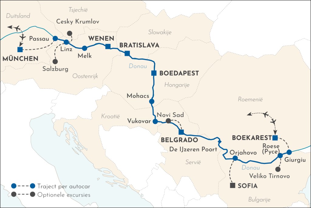 Deze indrukwekkende route doorkruist maar liefst acht landen en laat reizigers kennismaken met de rijke geschiedenis van Europa. Van de bruisende hoofdsteden Boedapest, Wenen, Bratislava, Belgrado en Boekarest tot het spectaculaire natuurfenomeen van de Portes de Fer, elke dag biedt nieuwe ontdekkingen.