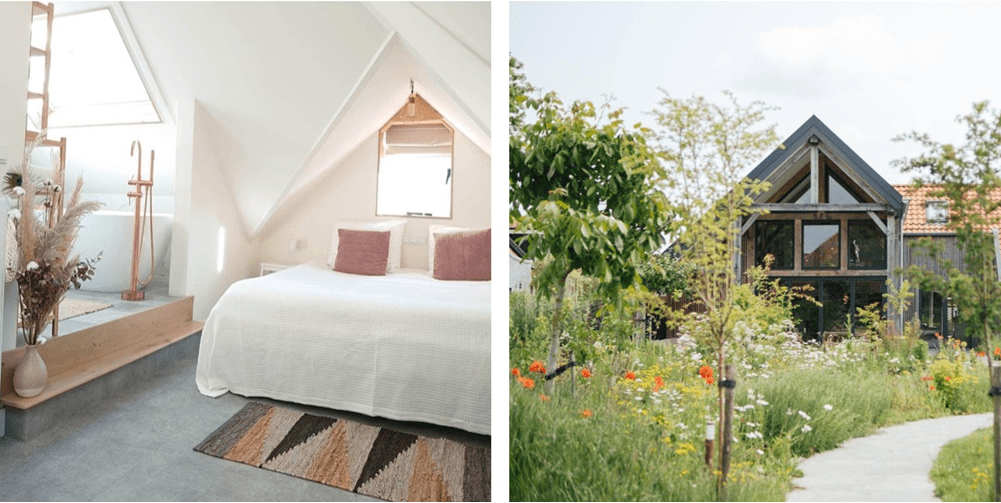 Texel compte un hôtel particulièrement calme, situé à l’extrémité est de l’île : Op Oost. Depuis votre suite, vous avez une vue sur le jardin potager, ainsi que sur les prairies environnantes où des moutons paissent tranquillement et où l’on peut apercevoir au printemps des centaines de petits agneaux. Pas de trafic, pas de pression, juste le paysage. Tout invite à ralentir la cadence, à lire un livre et à s’imprégner du rythme de l’île.
