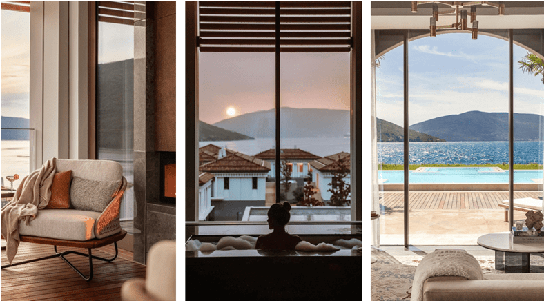 Dans la baie de Kotor, au Monténégro, se trouve l’hôtel One&Only Portonovi, l’exemple ultime du hurkle-durkle. Les suites spacieuses avec vue sur mer et terrasses privées ont été véritablement conçues comme une destination finale. Même la baignoire donne sur la baie, vous aurez donc le choix de paresser au lit ou dans votre bain. Une journée entière de tranquillité, avec un petit-déjeuner sur la terrasse, un bain sans fin et l’excellent service d’étage, il n’en faut pas plus.