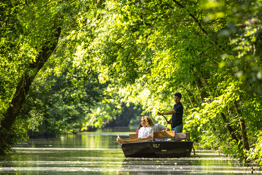 Ongerepte natuur, levend erfgoed en rustige activiteiten: dat is de belofte van het Marais Poitevin. Deze ware groene kathedraal nodigt jong en oud uit om te vertragen, te verkennen en zich te verwonderen. In het Marais Poitevin voelt natuur bijna cinematografisch. Smalle kanalen slingeren tussen knotwilgen, elzen en riet, terwijl het zonlicht door deze groene tunnel filtert. Je verkent het gebied op eigen tempo per roeiboot, kano, paddleboard of waterfiets, traag genoeg om vogels, libellen en het leven langs de oevers écht te zien.