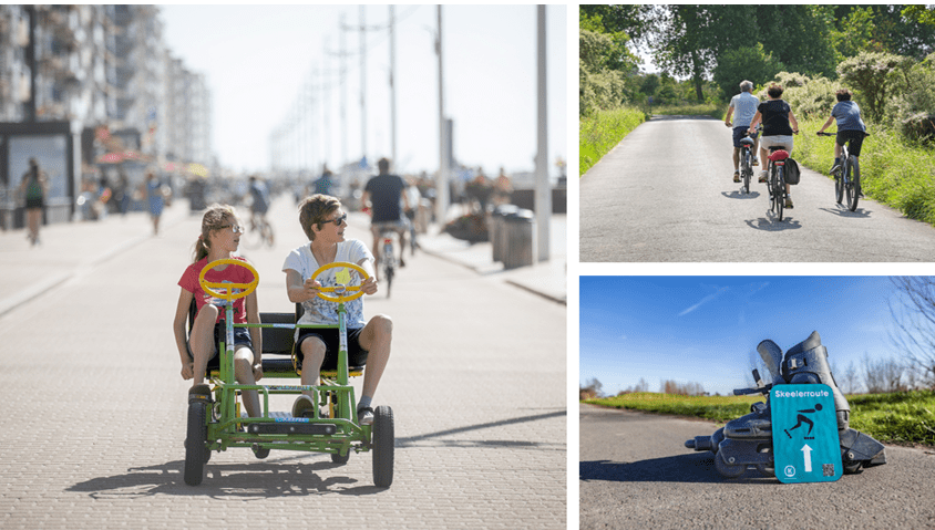 Les cyclistes n’ont pas été oubliés. Différents itinéraires balisés les conduiront vers la plage, dans les dunes et les polders. Vous n’avez pas de vélo ? Profitez des vélos partagés orange ou louez un vélo (électrique) chez un loueur professionnel. Pour une balade ludique et conviviale, suivez le parcours Jommeke : une sortie pour petits et grands, avec des lieux surprenants et des histoires amusantes.