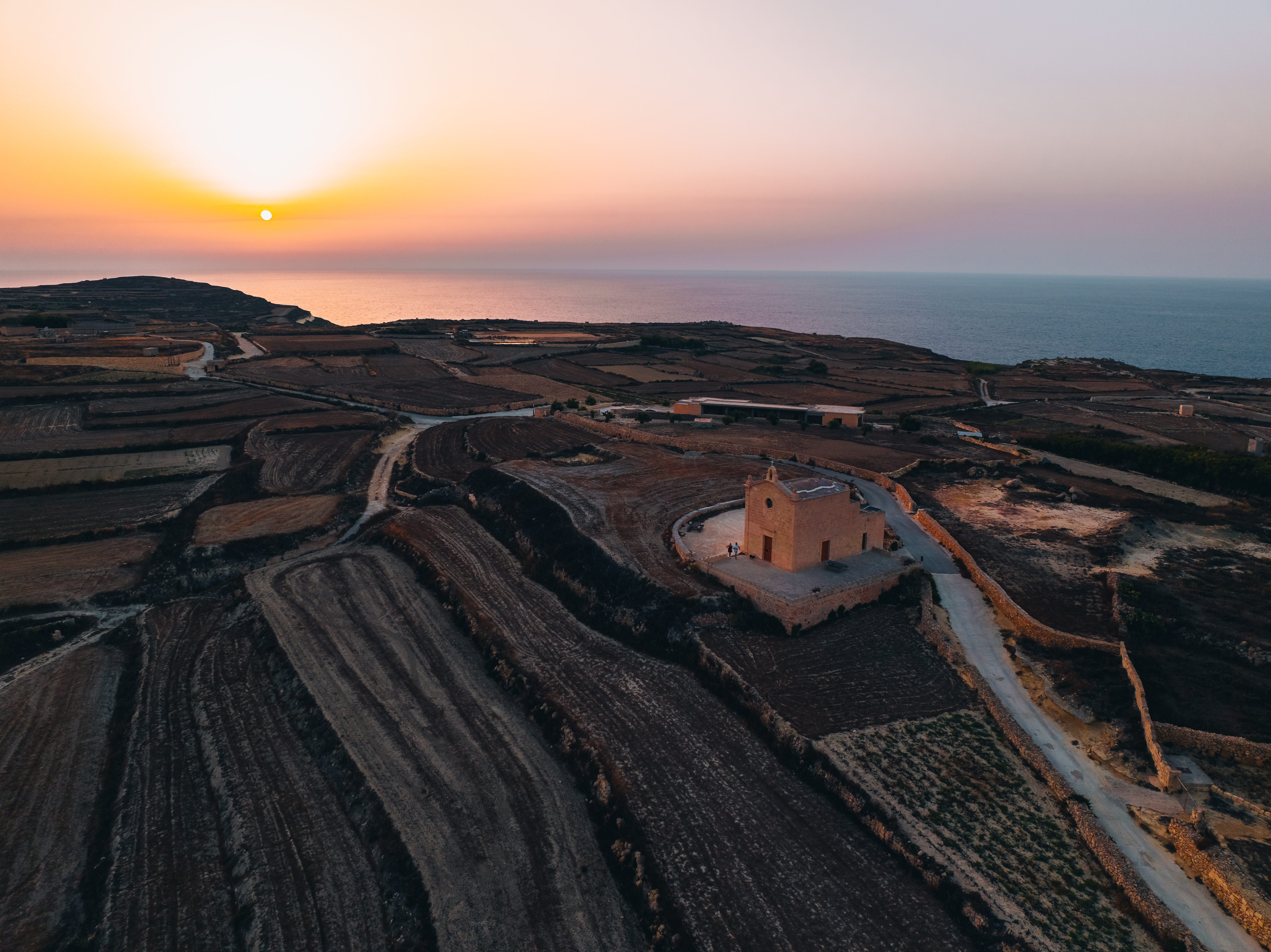 Een kapel midden in het niets, op de kliffen van Gozo. Dramatisch, stil en bijna surrealistisch vanuit de lucht.