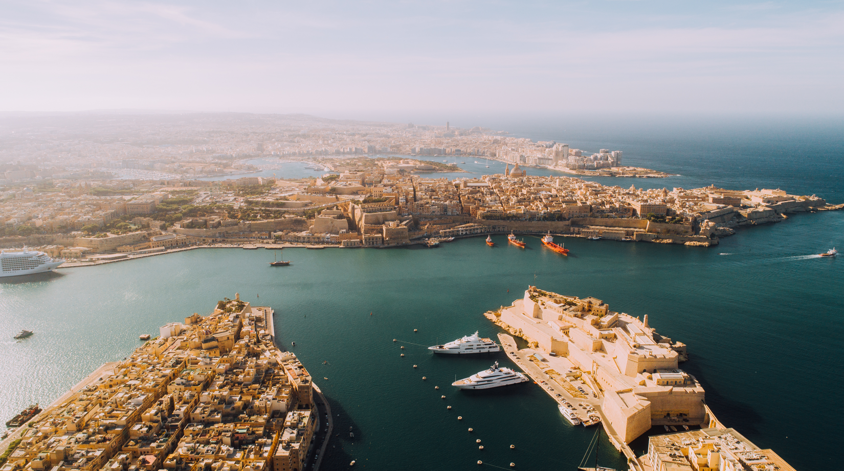Drie versterkte steden die uitkijken over de Grand Harbour. Van boven zie je pas hoe indrukwekkend de vestingstructuur en het doolhof van straatjes echt zijn.
